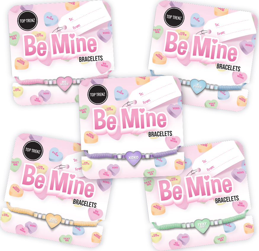 Spread the love with these adorable conversation hearts bracelets. One-size-fits-all adjustable closure.