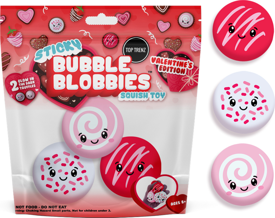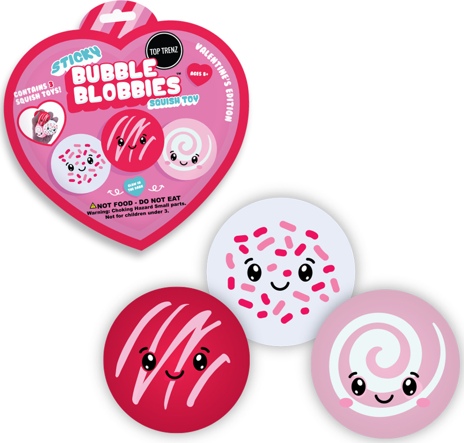 Squish, Stretch & toss! Watch them crawl the wall! The squishy ball you can squeeze, stack, stretch and stick to the wall. Valentine’s Day Sticky Bubble Blobbies never lose their stickiness, even after you wash them and leave no sticky residue. Toss it on the wall and watch them crawl.