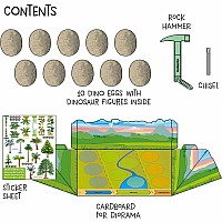 Step into the role of paleontologist as you excavate dinosaur figures from plaster dino eggs! This kit comes with ten dino eggs for you to dig into and discover ten different dinosaur figures. Once you’ve excavated all the dinosaurs, assemble the cardboard diorama and set up your very own dinosaur museum exhibit! Place the dino figures and prehistoric plant stickers in their spots along the prehistoric timeline.