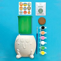 Bright Stripes Paint and Grow Orange U Glad kit allows kids to use their paint brush and green thumb at the same time! It's a painting set and gardening activity all in one! Paint a high-quality ceramic vase shaped as a funny Orange character! Use the included paint brush and 6 high gloss paint colors and funny fruit stickers to decorate. Add the soil pellet into the vase, pour in water and watch the expand like magic! Plant your real live Calendula seeds! These Buzzy Seeds are guaranteed to grow! If your seeds don't sprout for any reason, Bright Stripes will send you a new seed packet for free! With sunlight and diligent watering, you will see sunflowers start to grow in 7 to 14 days. Includes ceramic orange character vase (4" x "4" x 3"), coco husk soil pellet, pack of Calendula seeds, 6 ceramic paints, paint brush, Bright Stripes Craft Club bonus sheet of fruit stickers and growing instructions.