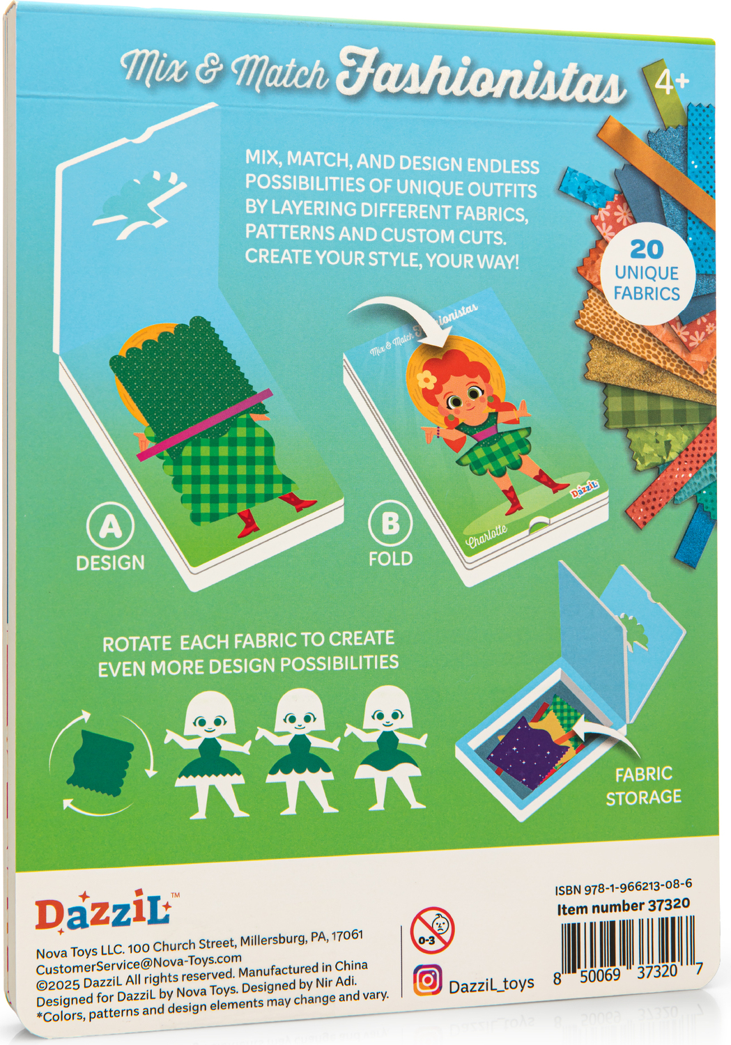 With the Mix & Match Fashionistas, kids can step into the shoes of a stylist! Create endless outfits by layering fabric pieces inside the frame—no sewing, glue, or scissors needed. This interactive and creative activity lets kids design, customize, and express their personal fashion sense, fostering imagination and style exploration. It’s a perfect way for aspiring fashion designers to have fun while creating unique looks!
