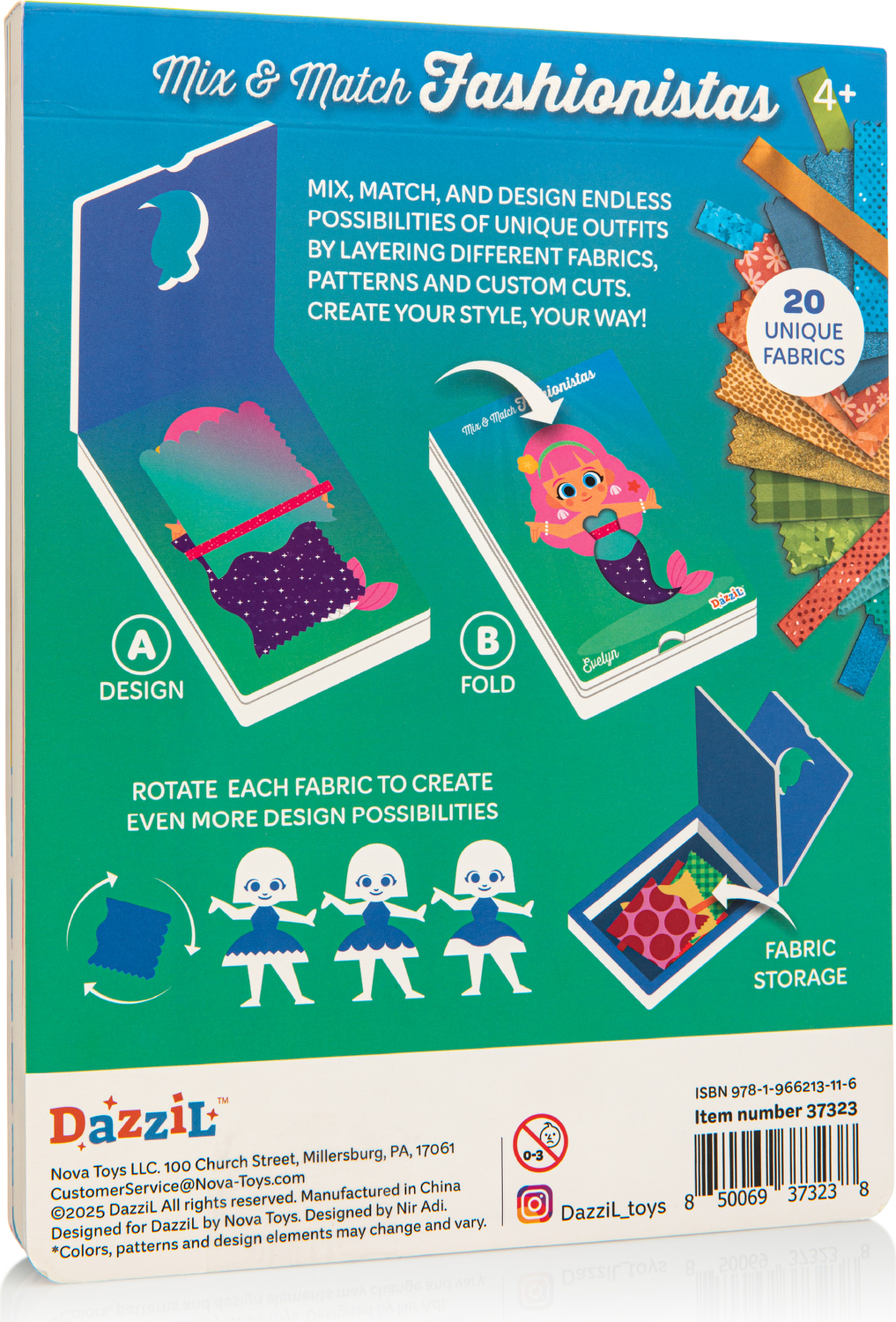 With the Mix & Match Fashionistas, kids can step into the shoes of a stylist! Create endless outfits by layering fabric pieces inside the frame—no sewing, glue, or scissors needed. This interactive and creative activity lets kids design, customize, and express their personal fashion sense, fostering imagination and style exploration. It’s a perfect way for aspiring fashion designers to have fun while creating unique looks!