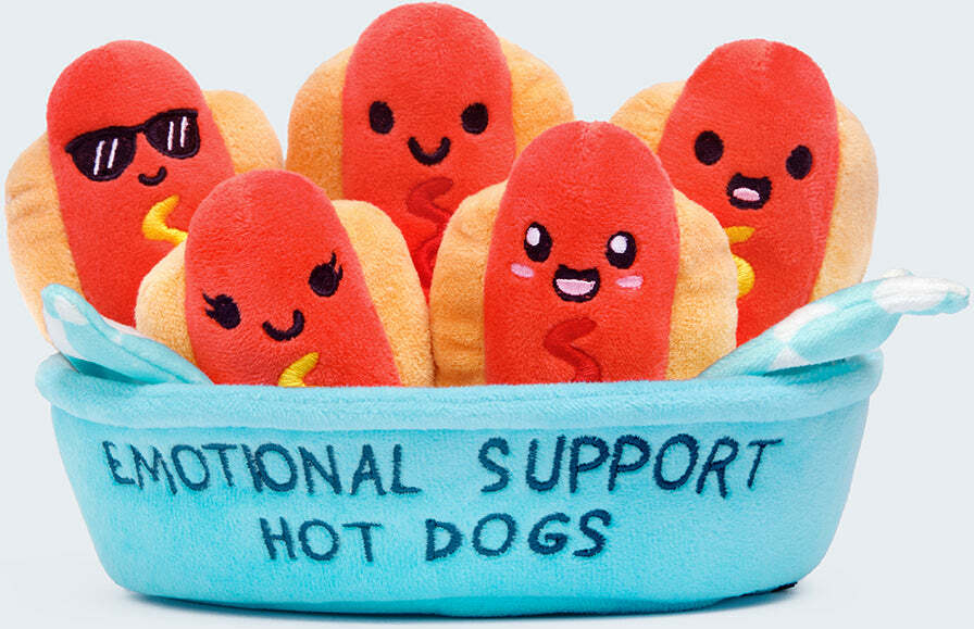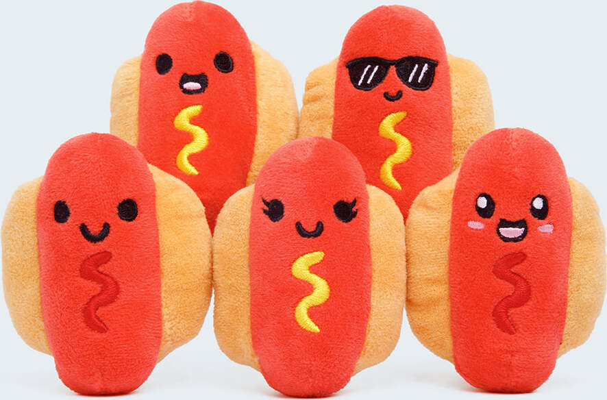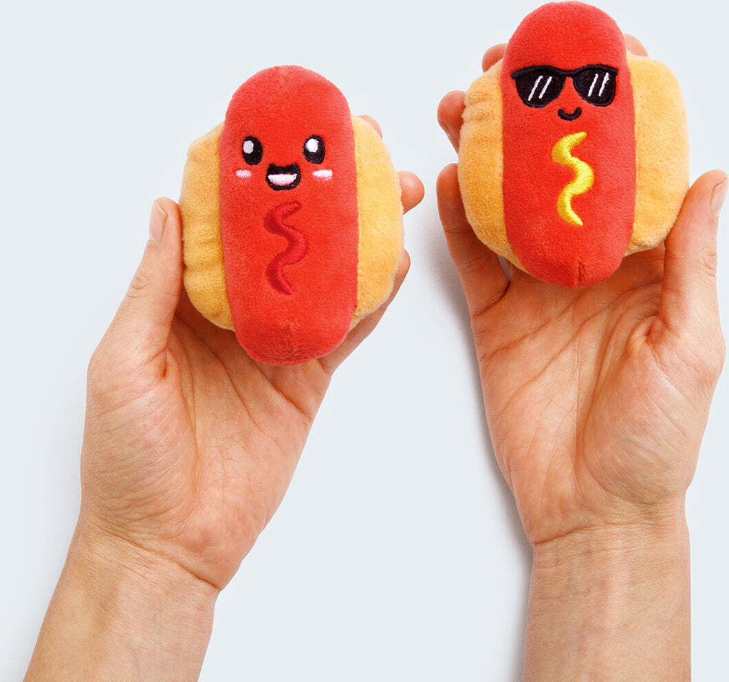 Relatable realize by making plush hot dogs, Relatable open ourselves up to some serious debate — so Relatable made an executive decision early on in production. Some of these plush hot dogs have mustard. The rest of them have ketchup. That way, everyone is happy. Complaints? Comments? Concerns? Please send all condiment related inquiries to customer service.