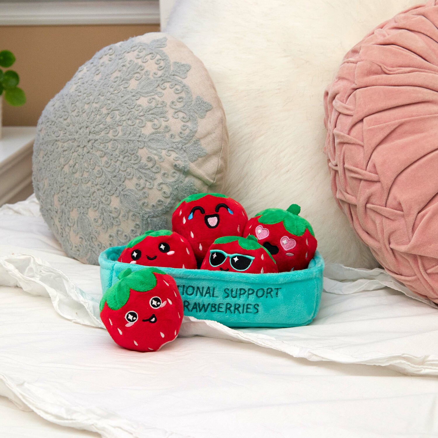 Nothing says "I love you" like chocolate covered strawberries... except plush strawberries, that is. Emotional Support Strawberries are the squishy food plushies that make the perfect gift for your loved one. Gift 'em, keep 'em, display 'em, collect 'em -- just don't eat them. Check out the full Emotional Support Plushies collection, too.