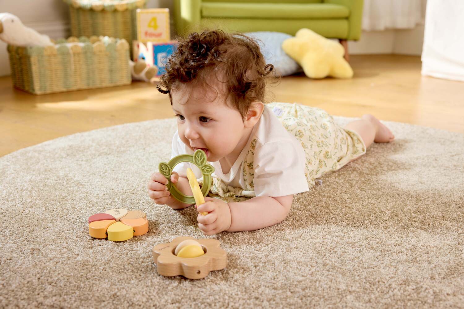 - 3 DISTINCT TOYS: Includes a flower-shaped teether, wooden rattle, and elastic flower rattle for a variety of sensory experiences.